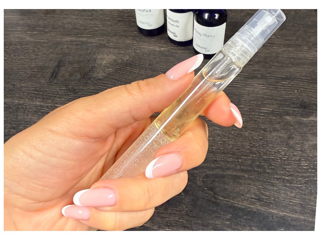 Discover the secrets of scents and the harmony of nature hidden in a single bottle. At the natural perfume making workshop at Organic Lab you will create your own personal perfume from pure natural essences under the guidance of an experienced perfumer. During the creation process, you will learn to mix scents to match your personality, mood, and style. Every perfume has a story – and yours will be completely unique. The small spray perfume making workshop is a variant without an oil base. Our spray perfumes are suitable for application not only on the body but also on clothes, just as you are used to with classic conventional perfumes.