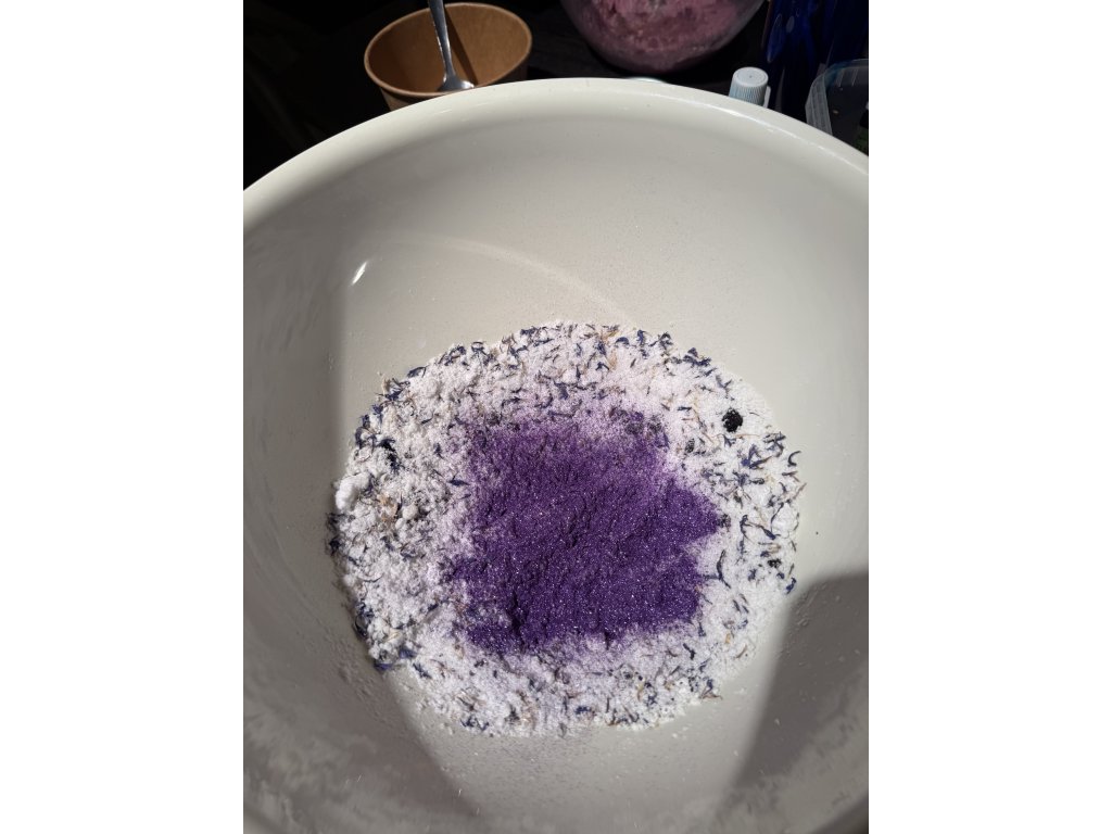Notice: If you decide to make strongly pigmented bombs with bold colors and an extra moisturizing formula, the bombs may leave a washable colored oily film on the bathtub surface after dissolving. Moisturizing oils bind pigments well and stick to the tub until you degrease it by standard washing. This is not permanent damage or irreversible change; it is a natural and classic phenomenon with bath bombs on the market when combining bold colors and extra moisturizing oils.