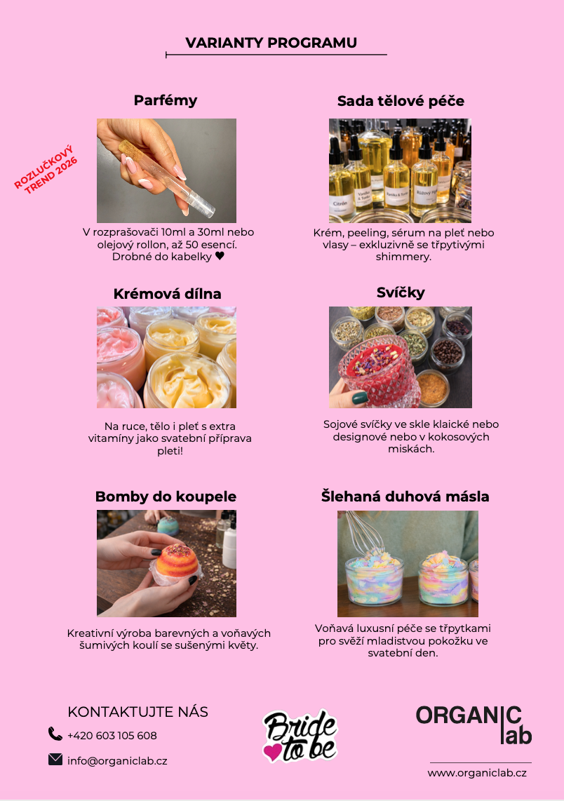 Který workshop: jakýkoli workshop z naší nabídky, nejoblíbenější jsou parfémy malé nebo velké, ale připravíme vám kterýkoli z workshopů či jejich mix